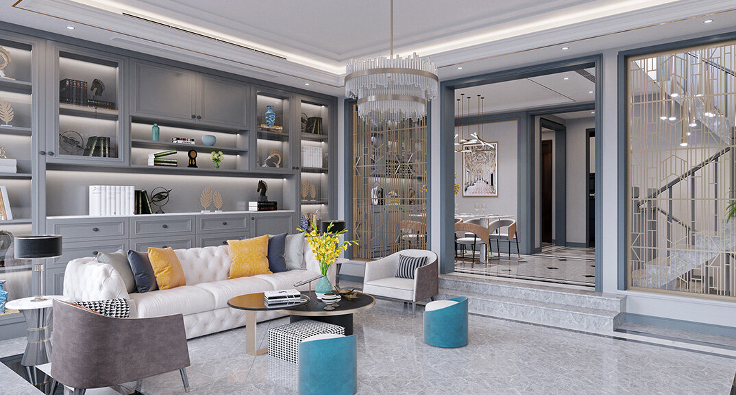 泰和郡338㎡聯(lián)排別墅美式輕奢風格裝修案例效果圖