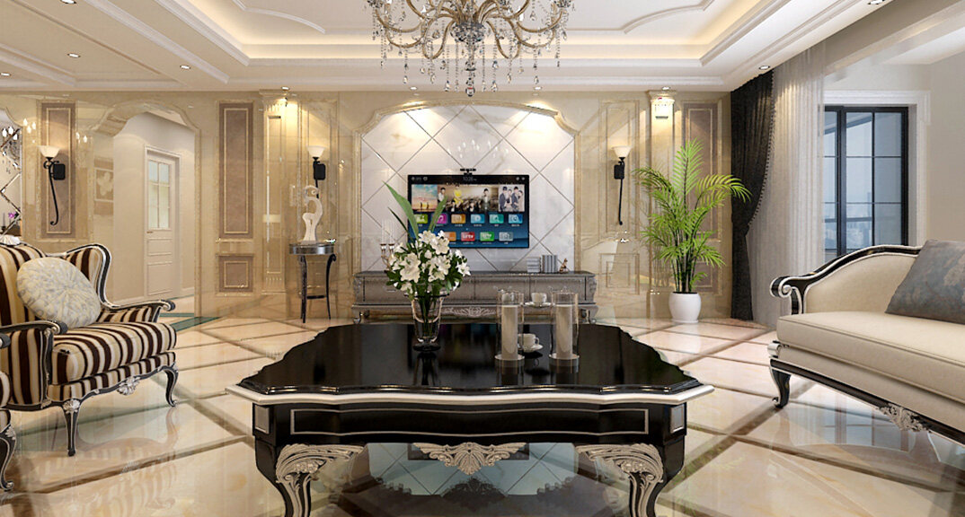 魯潤靜園234㎡四室兩廳客廳電視簡歐風格裝修案例效果圖