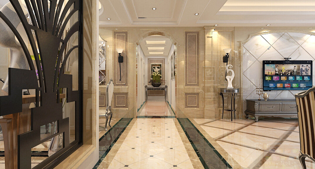 魯潤靜園234㎡四室兩廳走廊簡歐風格裝修案例效果圖
