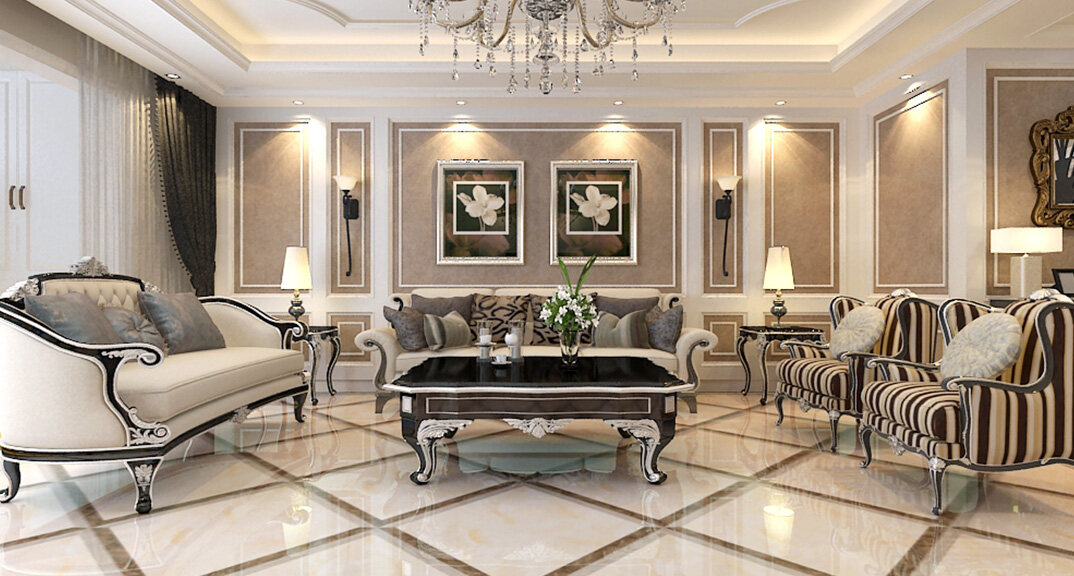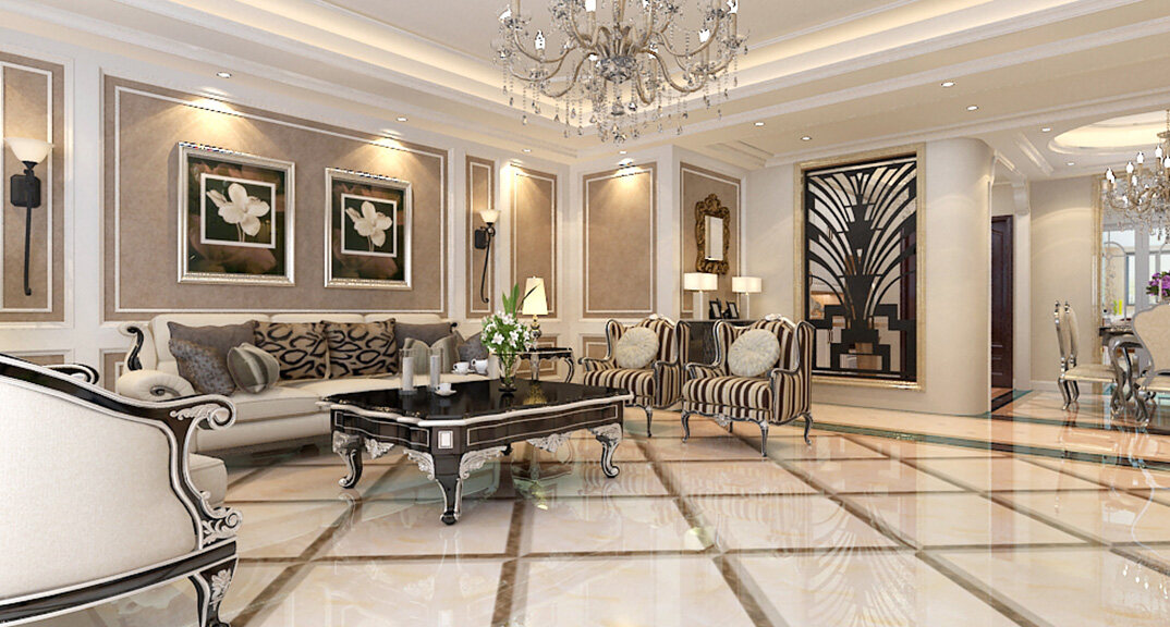 魯潤靜園234㎡四室兩廳客廳簡歐風格裝修案例效果圖