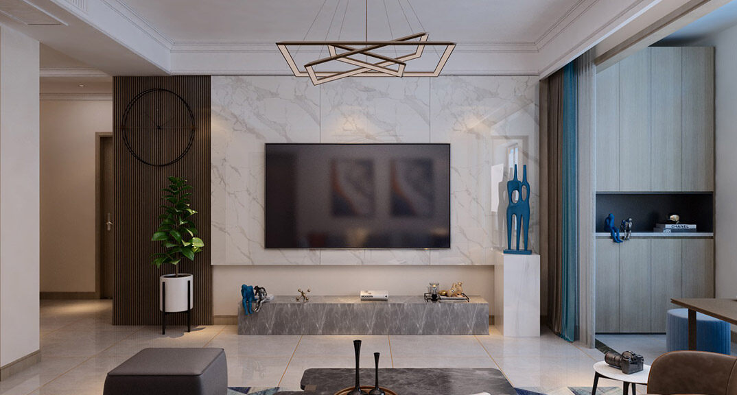 鑫江合院270㎡別墅客廳電視現(xiàn)代風格裝修案例效果圖