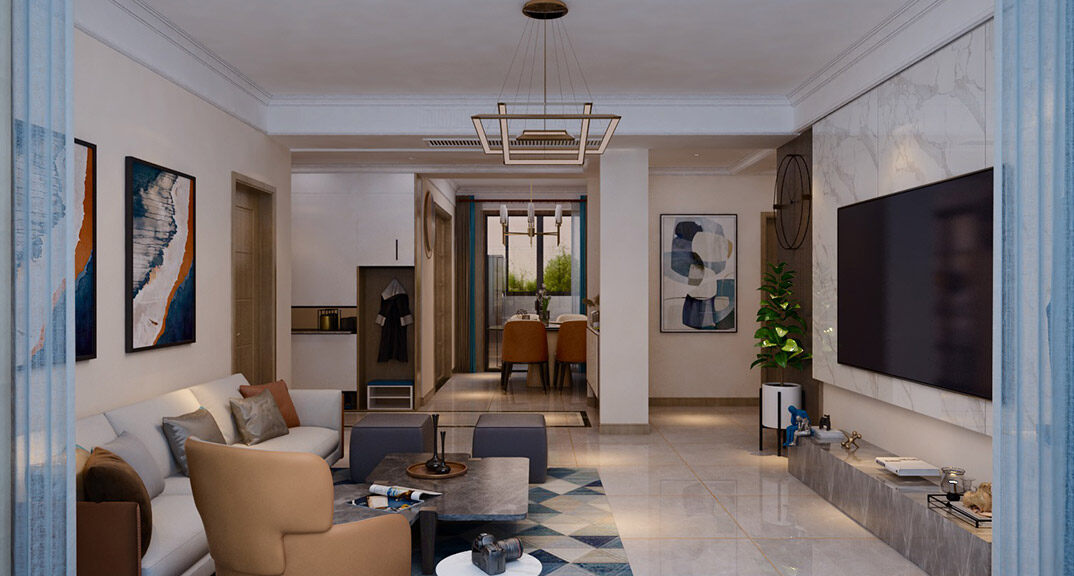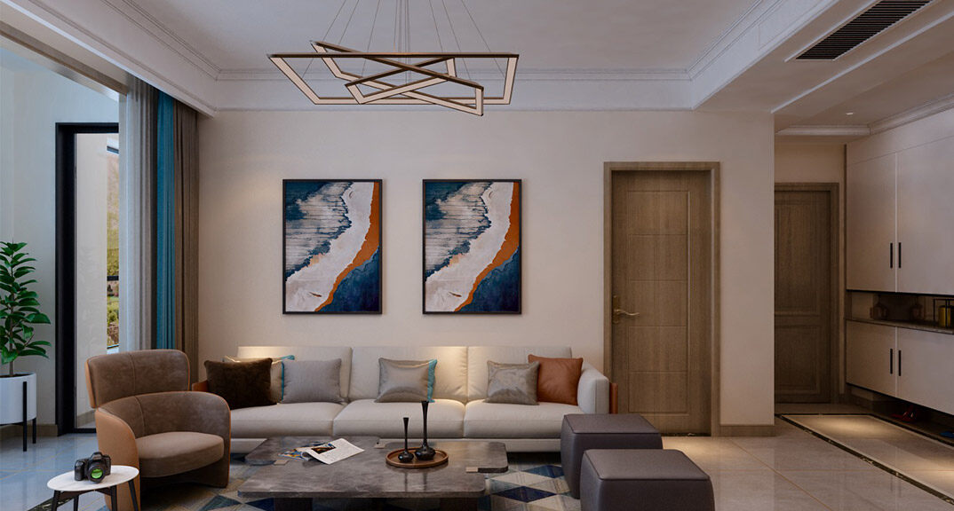 鑫江合院270㎡別墅客廳沙發(fā)現(xiàn)代風格裝修案例效果圖