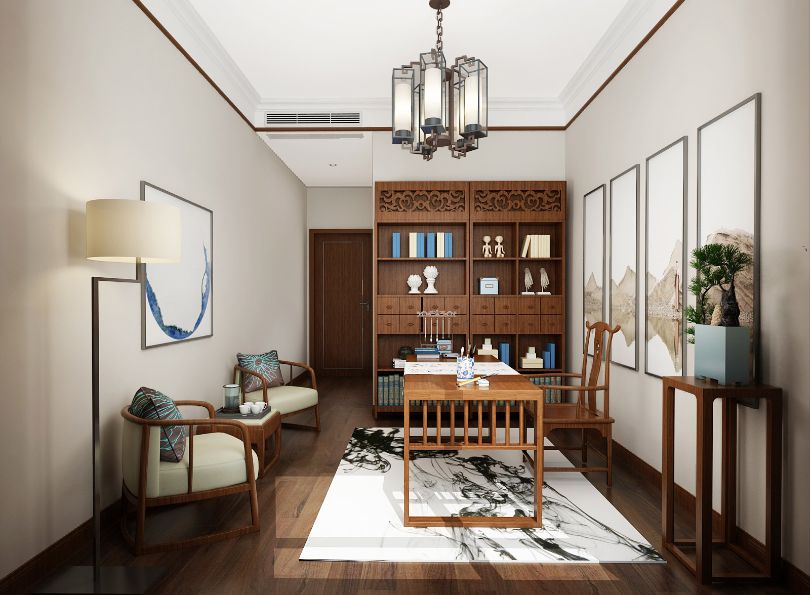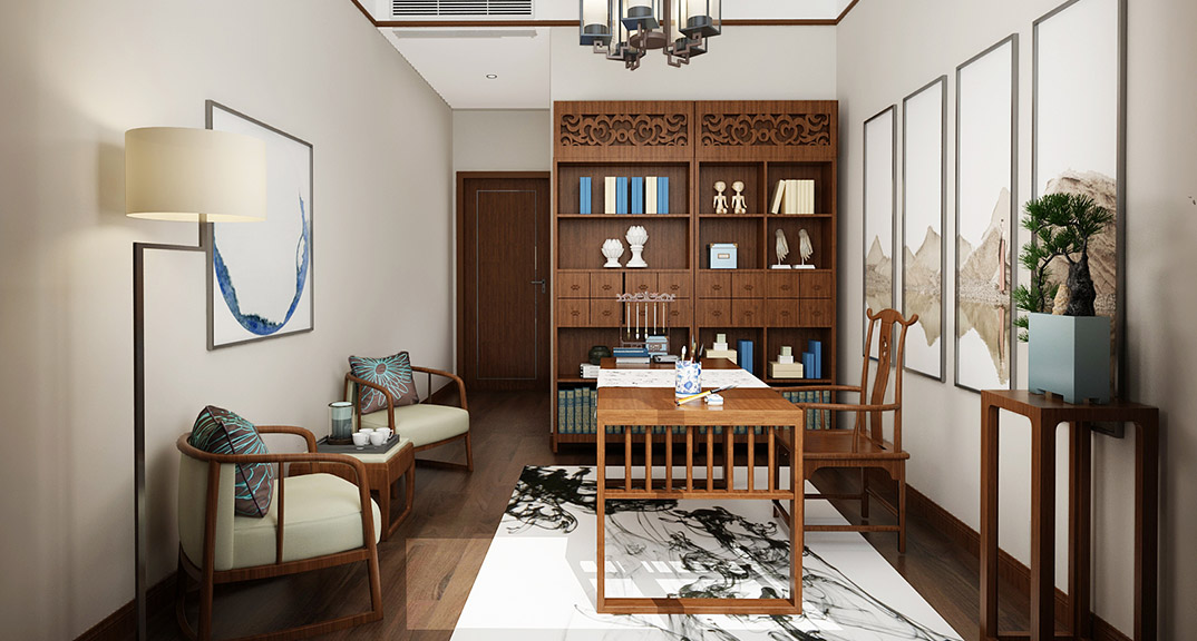 市直三區(qū)260㎡平層書房新中式風(fēng)格裝修案例效果圖