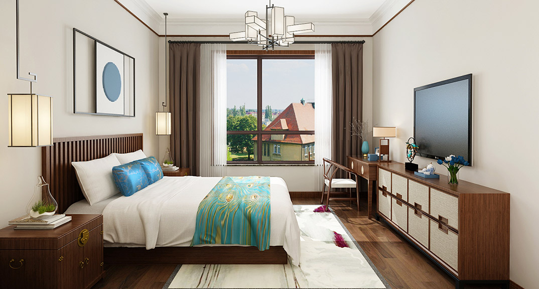 市直三區(qū)260㎡平層臥室新中式風(fēng)格裝修案例效果圖