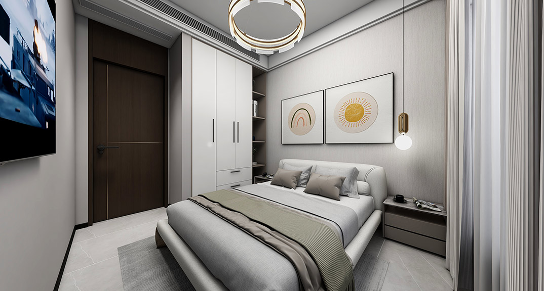 昆侖府150㎡疊拼上疊臥室現(xiàn)代輕奢風(fēng)格裝修案例效果圖