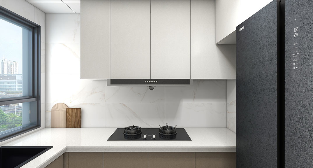 越秀星匯城97㎡三室兩廳廚房輕奢風(fēng)格裝修案例效果圖