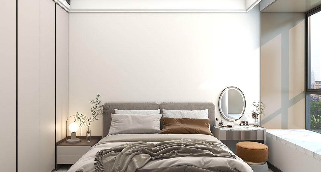 越秀星匯城97㎡三室兩廳臥室輕奢風(fēng)格裝修案例效果圖