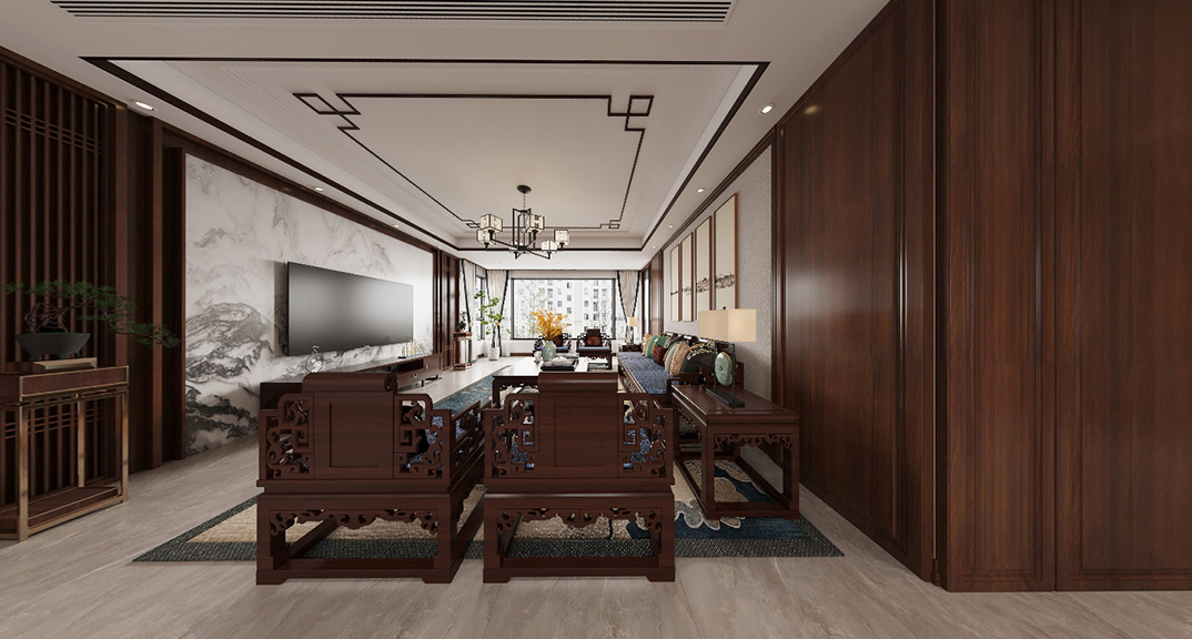 璞麗豪庭200㎡四室兩廳中式風(fēng)格裝修vr全景案例