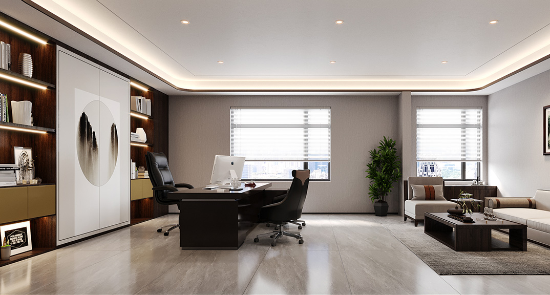河山別墅300㎡別墅書房新中式風格裝修案例效果圖