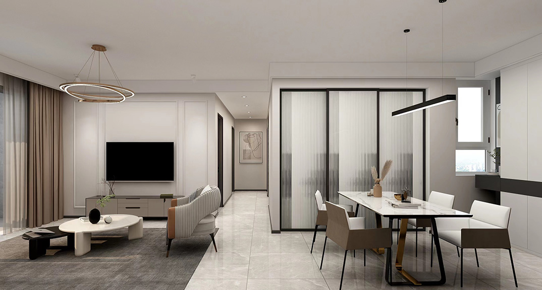 錦鈺佳苑118㎡三室兩廳客餐廳現(xiàn)代風(fēng)格裝修案例效果圖
