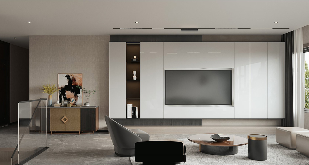 秦樓社區(qū)120㎡三室兩廳客廳電視現(xiàn)代風(fēng)格裝修案例效果圖