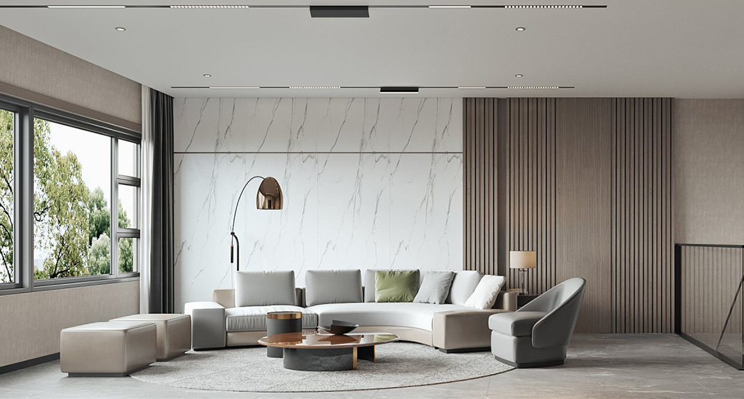 秦樓社區(qū)120㎡三室兩廳客廳沙發(fā)現(xiàn)代風(fēng)格裝修案例效果圖
