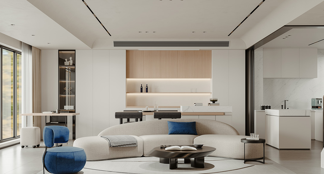 紫荊閣300㎡別墅下疊客廳新中式風(fēng)格裝修案例效果圖
