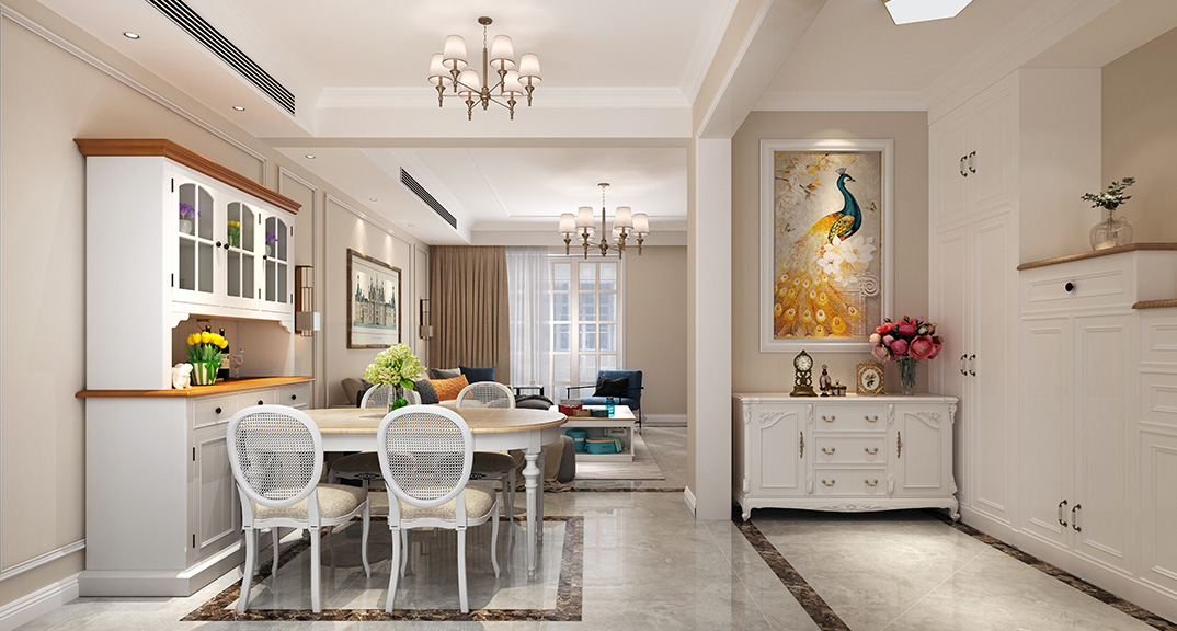 壹號學(xué)府135㎡三室兩廳客餐廳美式風格裝修案例效果圖