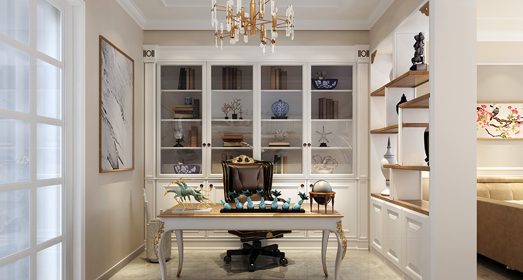 壹號學(xué)府135㎡三室兩廳書房美式風格裝修案例效果圖