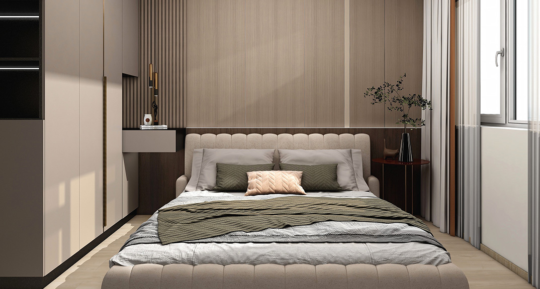 西藏路小區(qū)85㎡兩室一廳主臥現(xiàn)代風(fēng)格裝修案例效果圖