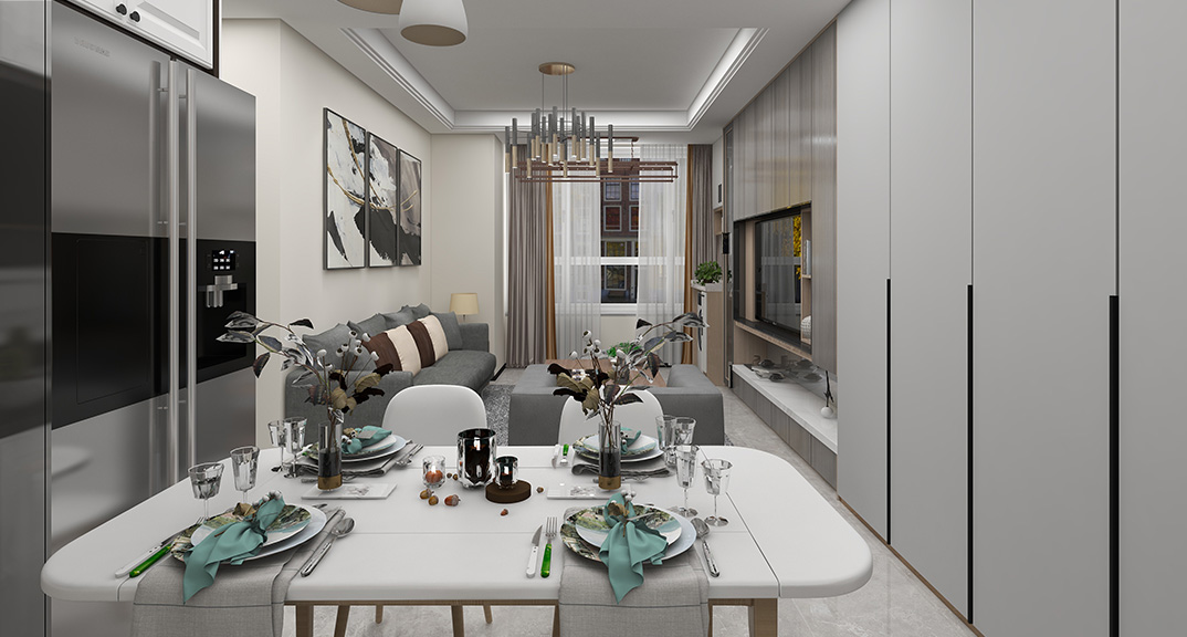 保利時(shí)代78㎡兩室兩廳客餐廳現(xiàn)代簡(jiǎn)約風(fēng)格戶型研發(fā)效果圖