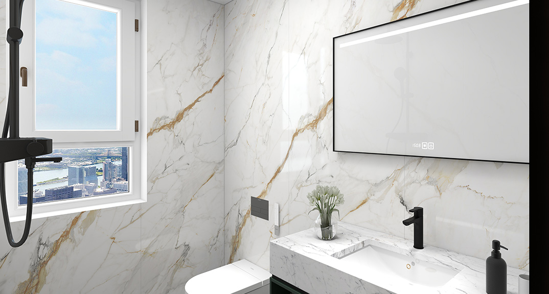 保利時代98㎡三室兩廳衛(wèi)生間輕奢風格戶型研發(fā)效果圖