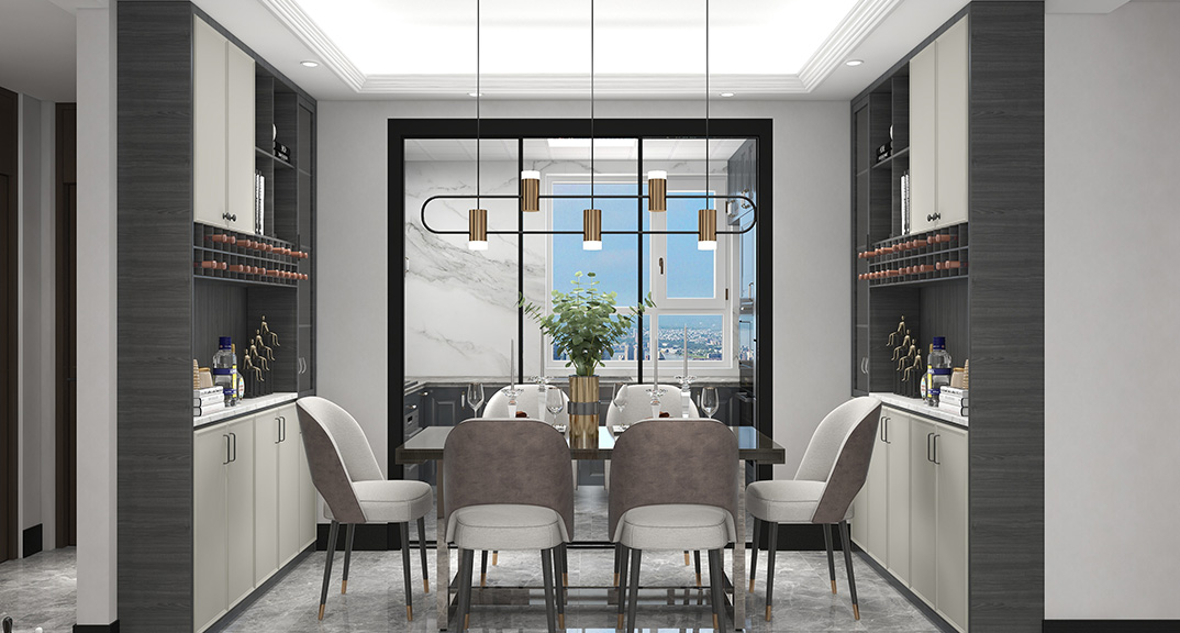 保利時代98㎡三室兩廳餐廳輕奢風格戶型研發(fā)效果圖