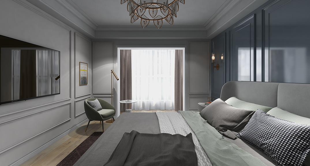 保利時(shí)代110㎡三室兩廳美式輕奢風(fēng)格戶型研發(fā)效果圖
