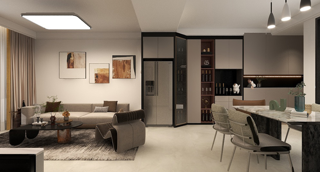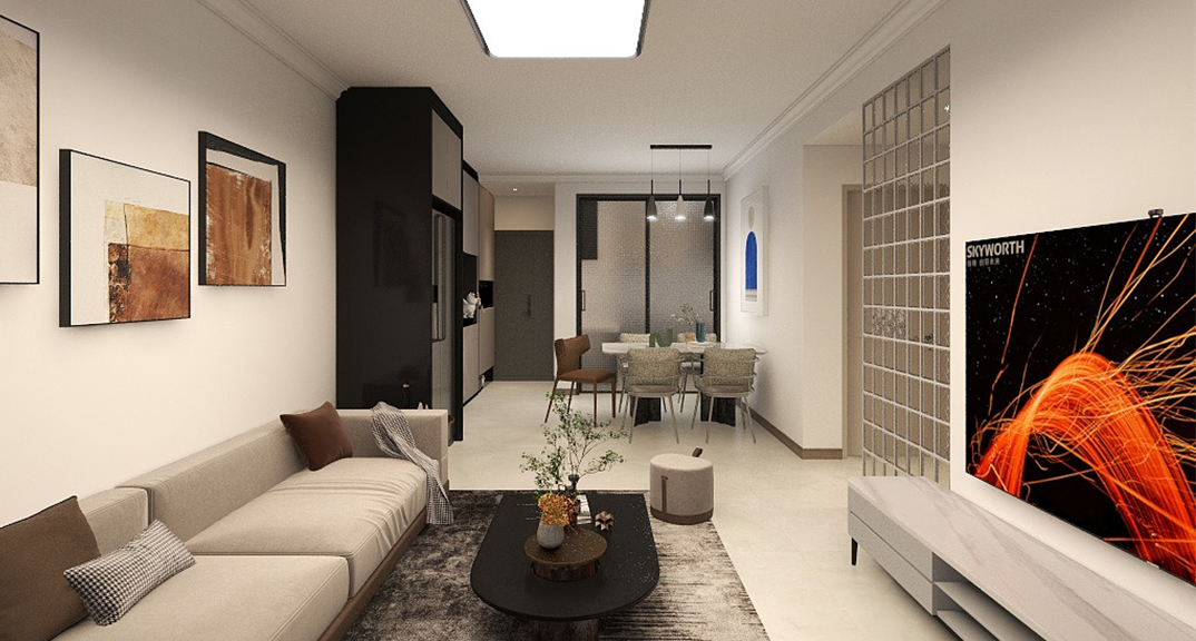 保利時代110㎡三室兩廳現(xiàn)代風格戶型研發(fā)效果圖
