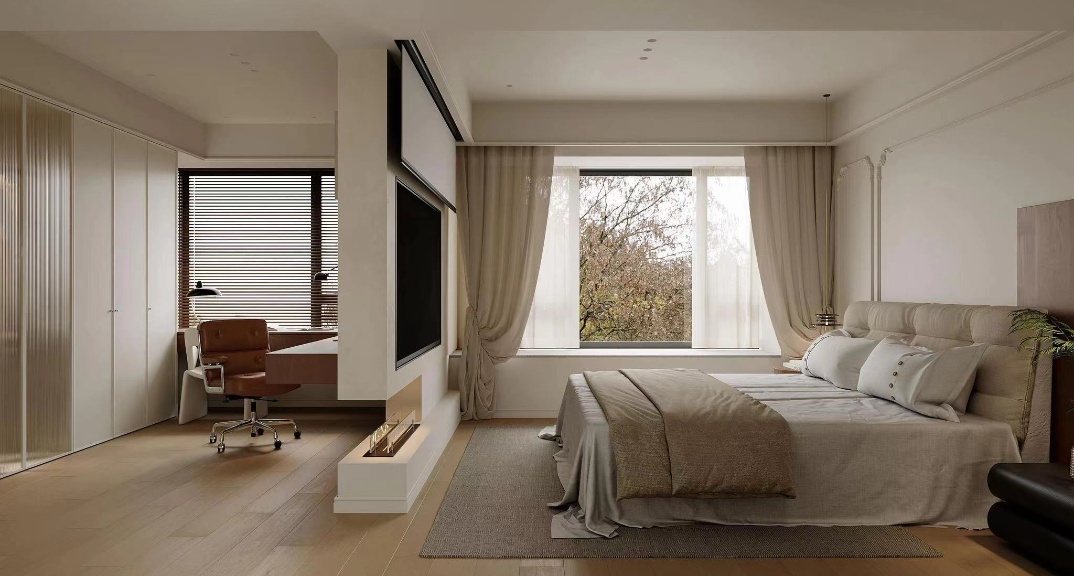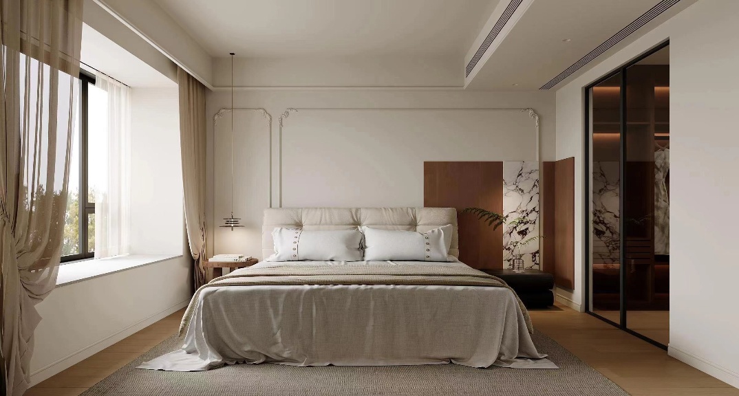 ·裝飾 : 通過(guò)壁紙、窗簾和床品的搭配,打造一個(gè)溫馨且私密的空間。