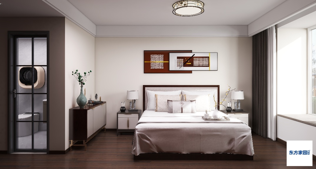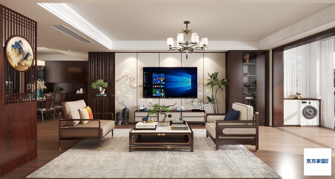 裝修效果圖-山?;▓@137平米-新中式效果圖