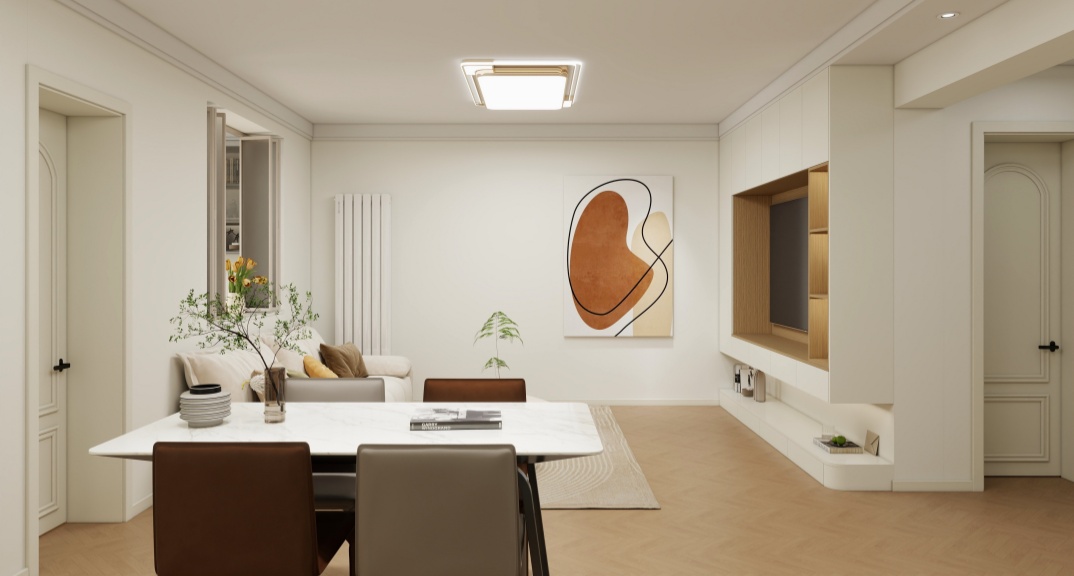 本案例整體風格運用了現(xiàn)代奶油原木風,原戶型客廳為暗廳,白色與原木色的運用使空間更明亮溫馨,布局上增加了大量的收納空間,房間使用更加干凈整潔。