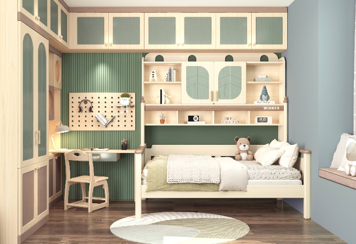 床的位置要合理,避免靠近窗戶和門,以免受到外界的干擾??梢赃x擇帶有床頭燈和床頭柜的床,方便孩子在睡前閱讀和存放物品。