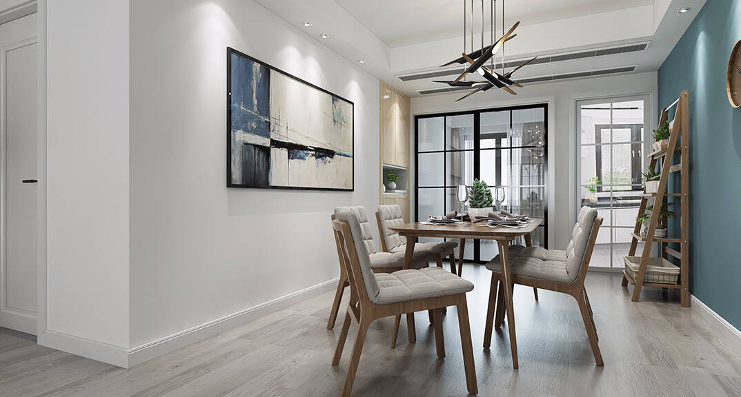 北歐風(fēng)格家居設(shè)計(jì),簡潔、干練,讓家中呈現(xiàn)一種自然的舒適、干凈之美。木質(zhì)地板,白色波點(diǎn)的墻面,餐桌椅就像那故意做舊處理的木質(zhì)長桌,一股濃濃的老式北歐范,陪著白色的蠟燭,更顯明朗與溫馨。 黑色的塑料餐椅與原木色的餐桌搭配,現(xiàn)代與自然元素想結(jié)合,溫暖的色調(diào)一致搭配。