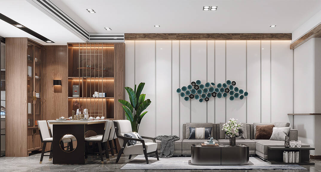 本案房屋,就像一張空白的畫布,透過設(shè)計(jì)師的精湛手法,涂抹上層層的創(chuàng)意精采,最后呈現(xiàn)的是現(xiàn)代大氣磅礴的氛圍。柔軟的布藝配飾,奠定了現(xiàn)代感的風(fēng)格基調(diào),設(shè)計(jì)師以實(shí)用的功能為基礎(chǔ),對(duì)使用的材料和色彩燈光等元素進(jìn)行改造。