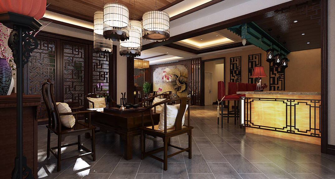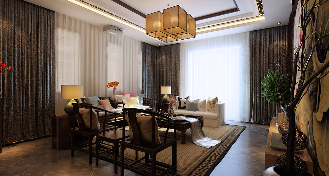 龍湖滟瀾海岸187㎡別墅中式風(fēng)格裝修案例效果圖
