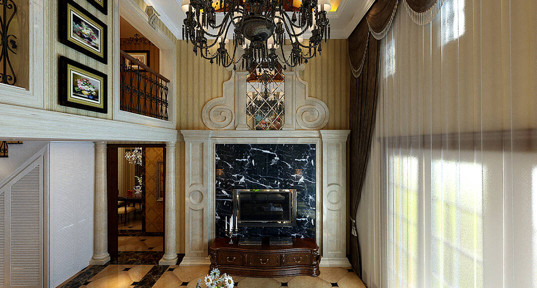 中冶圣喬維斯268㎡別墅客廳沙發(fā)美式風格裝修案例效果圖