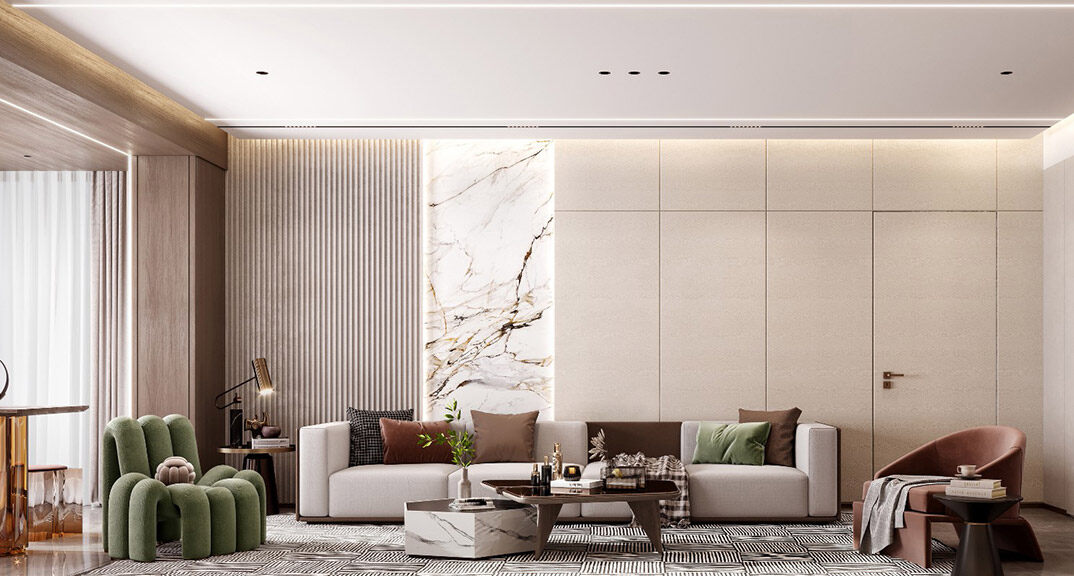 天一仁和瓏樾海115㎡三室兩廳兩衛(wèi)客廳現(xiàn)代簡約風(fēng)格裝修研發(fā)效果圖