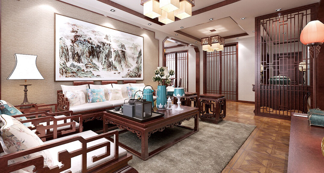 科大公寓138㎡別墅客廳沙發(fā)中式風格裝修案例效果圖