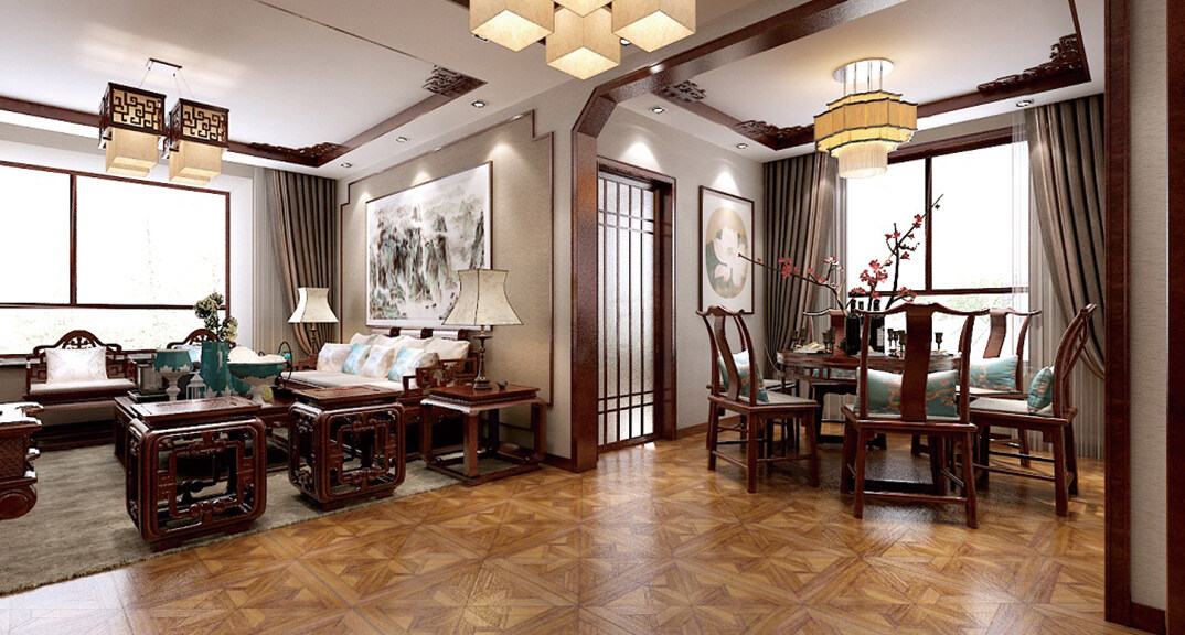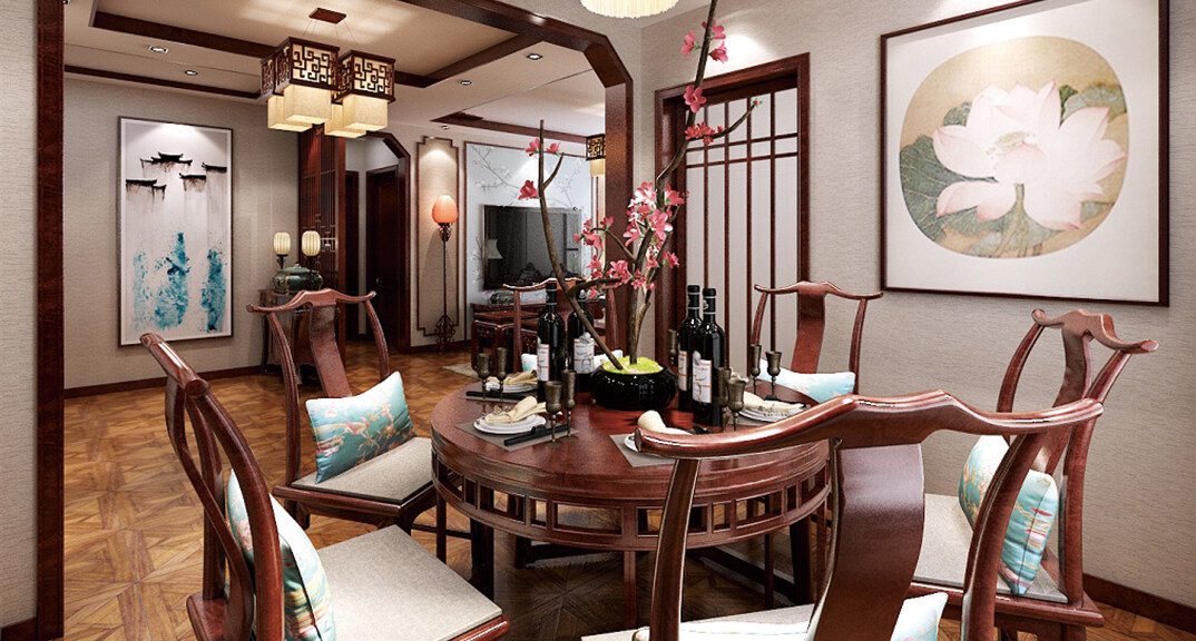 科大公寓138㎡別墅客餐廳中式風格裝修案例效果圖
