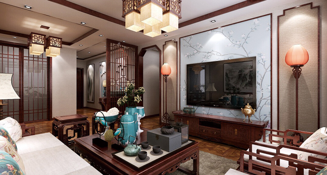 科大公寓138㎡別墅客廳電視中式風格裝修案例效果圖