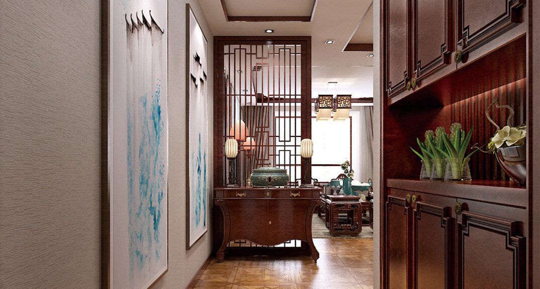 科大公寓138㎡別墅玄關中式風格裝修案例效果圖