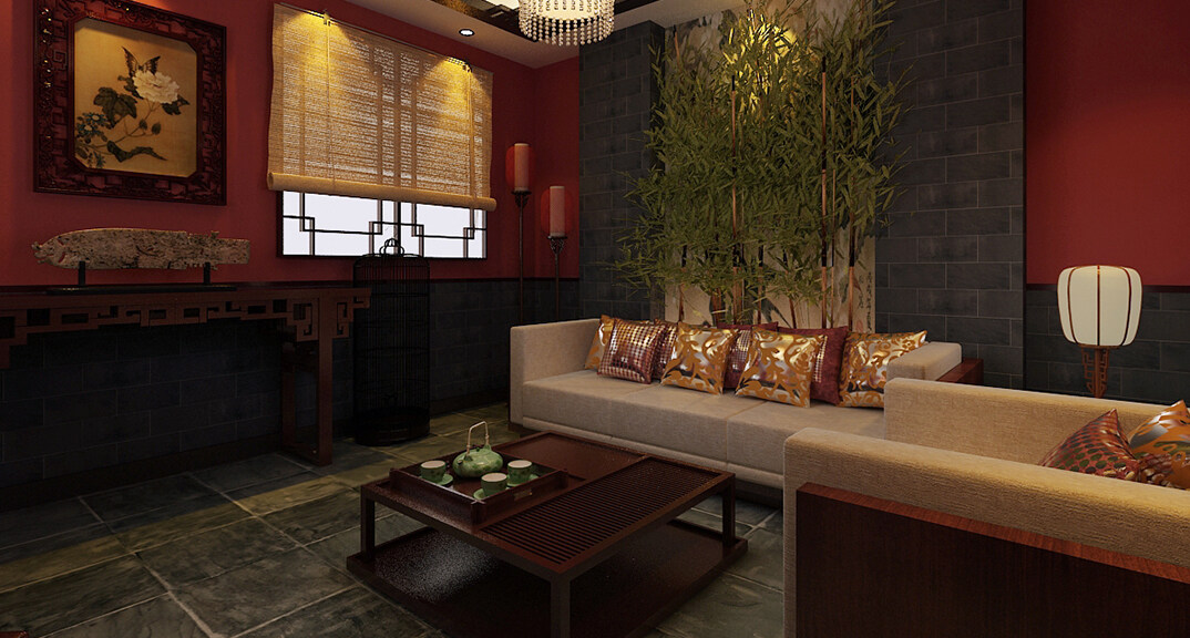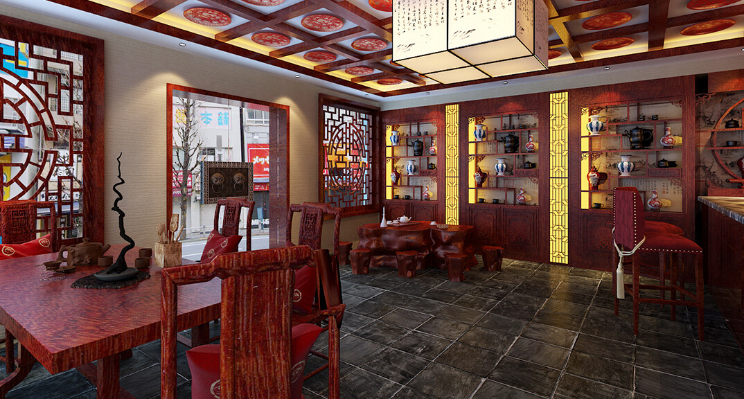 茶樓裝修200㎡茶室中式風格案例效果圖-夏紅