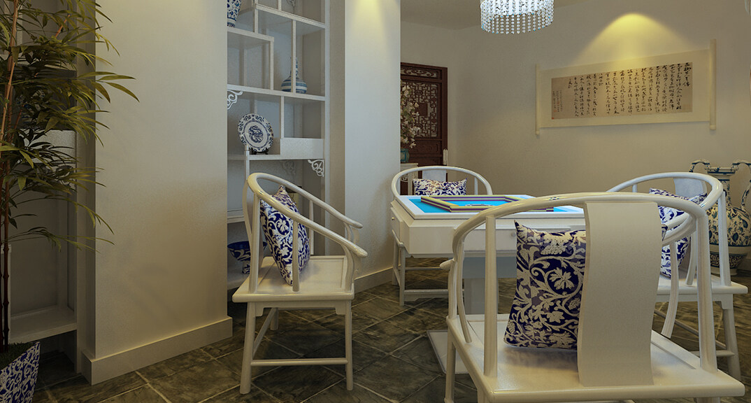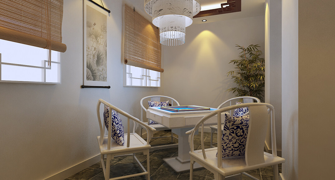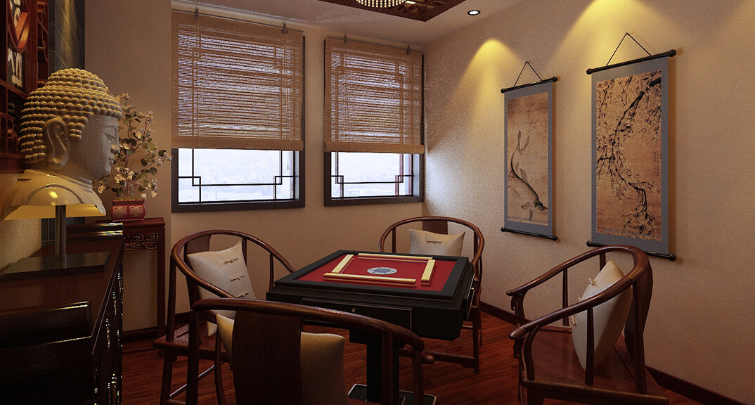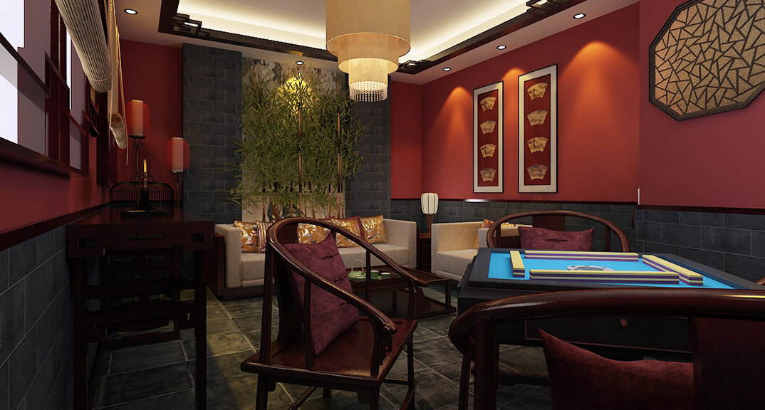 茶樓裝修200㎡茶室棋牌室中式風格案例效果圖-冬青