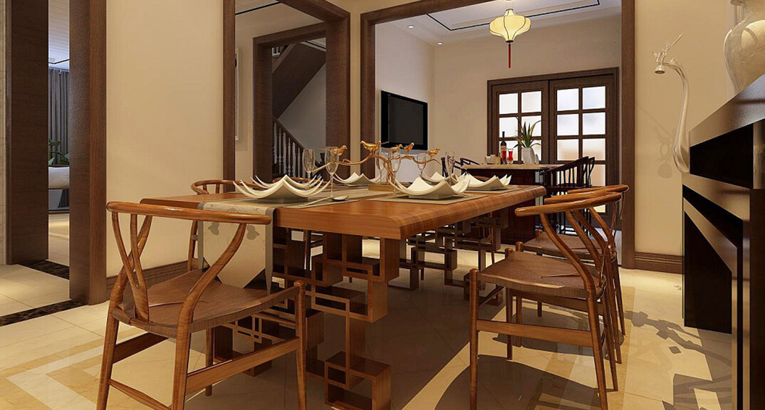 時(shí)代城318㎡別墅餐廳新中式風(fēng)格裝修案例效果圖