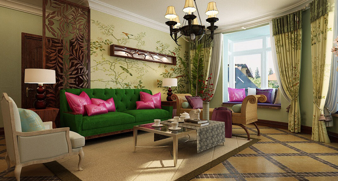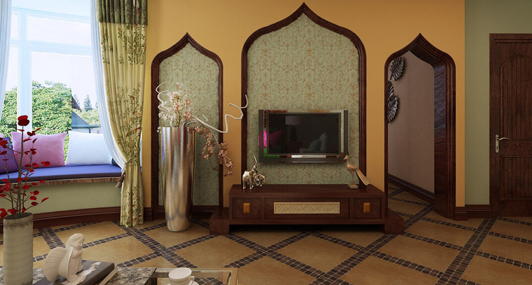 交運(yùn)山莊142㎡三室二廳客廳東南亞風(fēng)格裝修案例效果圖