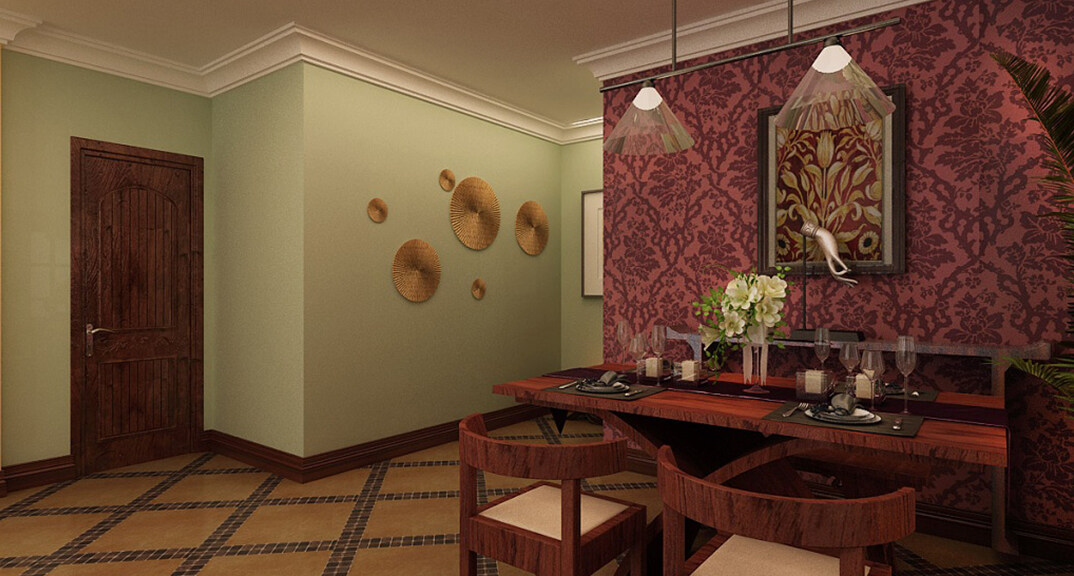 交運(yùn)山莊142㎡三室二廳餐廳東南亞風(fēng)格裝修案例效果圖