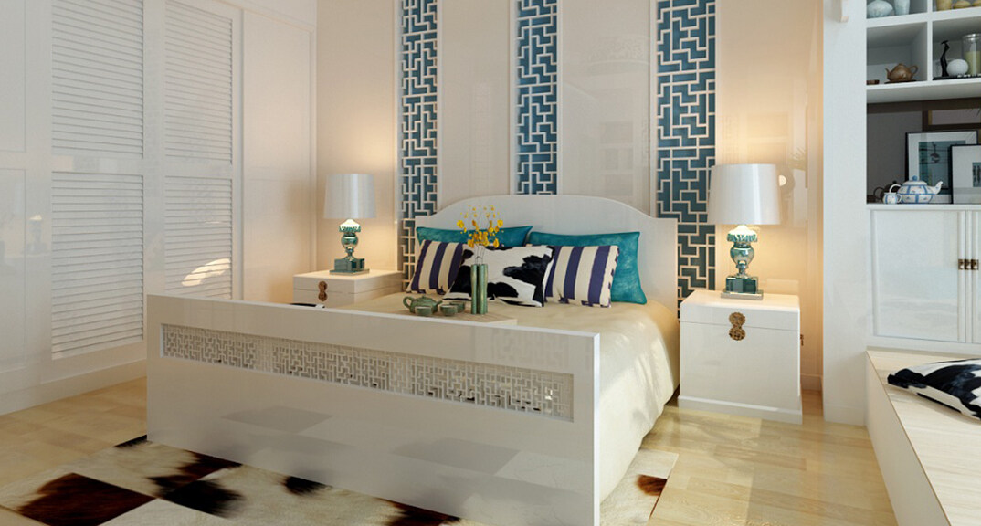 曉港名城146㎡三室一廳臥室新中式風(fēng)格裝修案例效果圖
