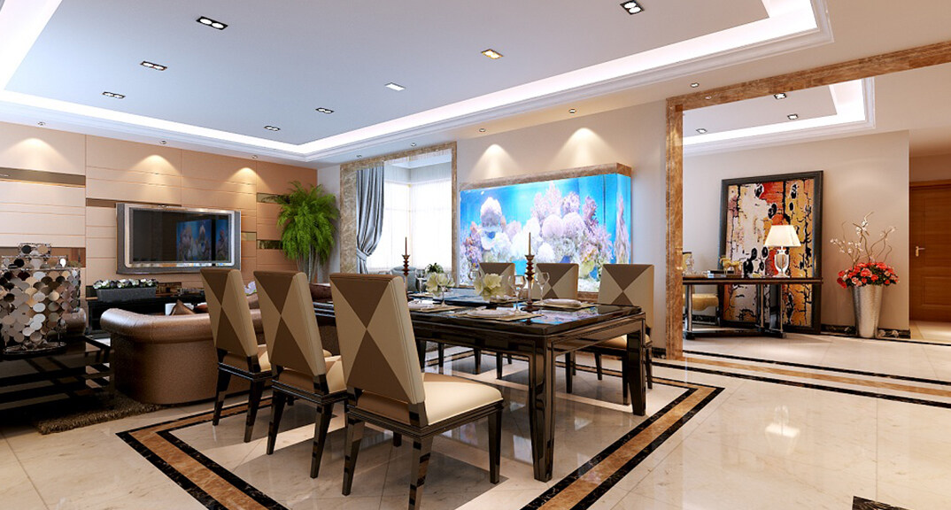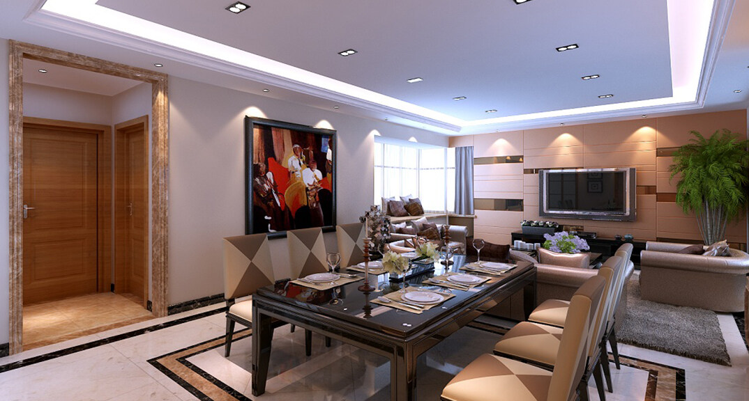 曉港名城164㎡三室一廳客餐廳港式風(fēng)格裝修案例效果圖