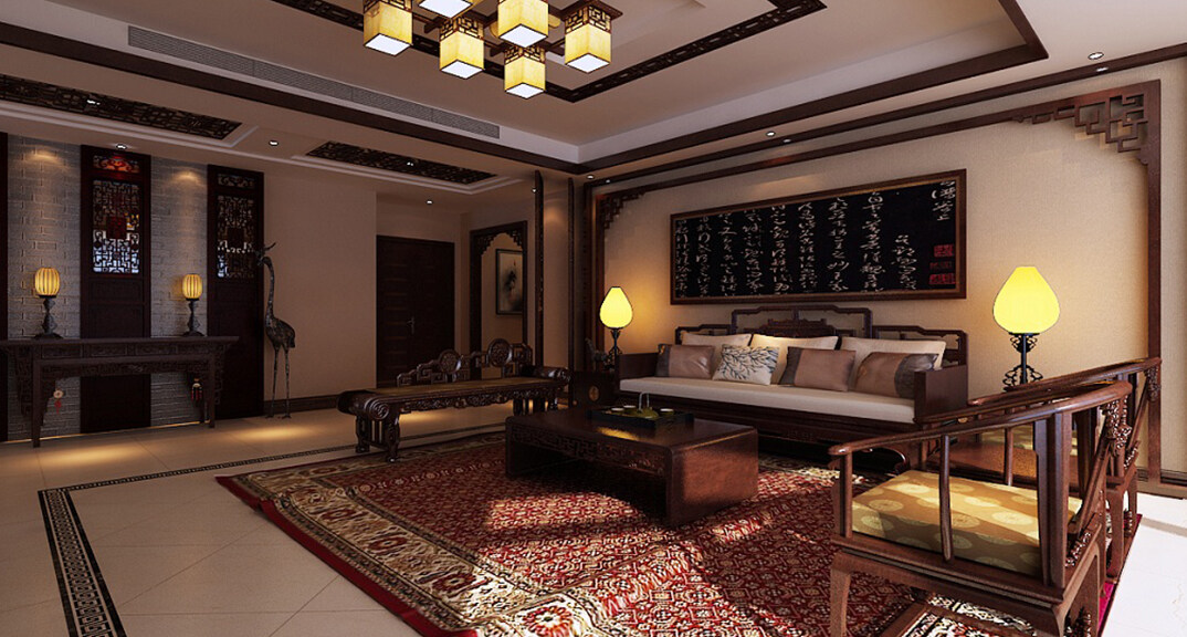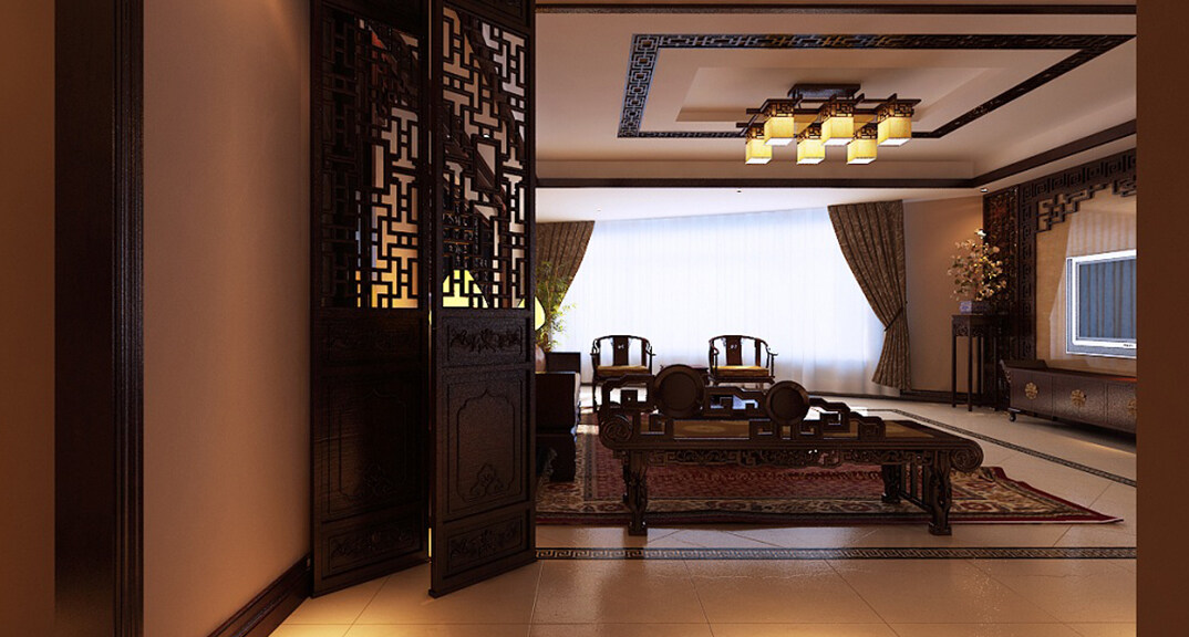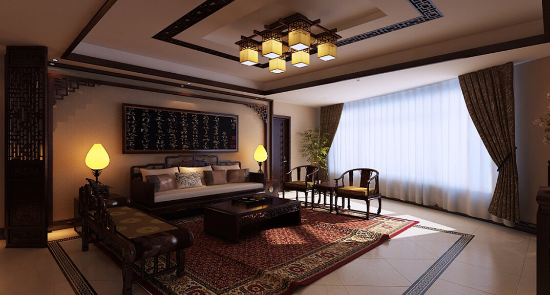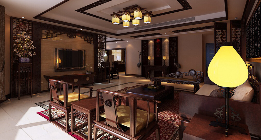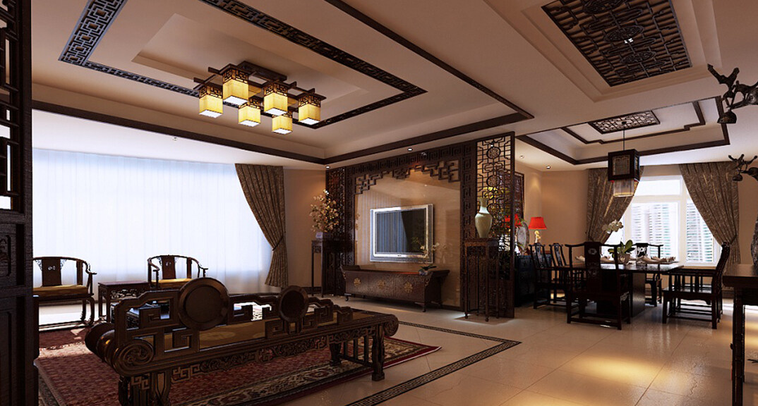 燕島國際172㎡平層客廳中式風格裝修案例效果圖