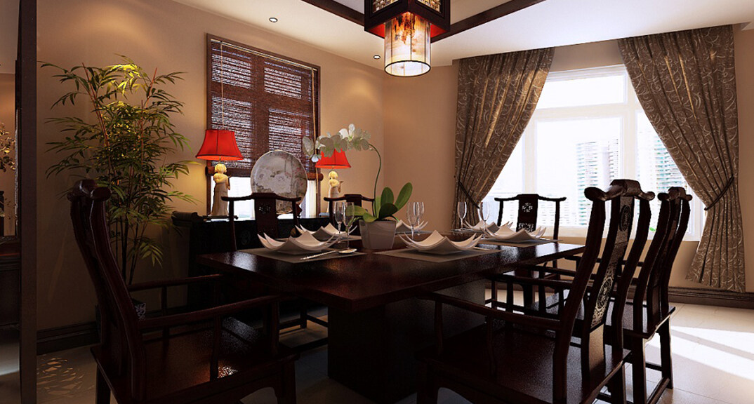 燕島國際172㎡平層餐廳中式風格裝修案例效果圖