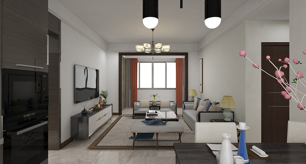 青安·海悅居86㎡二室二廳客廳電視現(xiàn)代簡(jiǎn)約風(fēng)格裝修案例效果圖