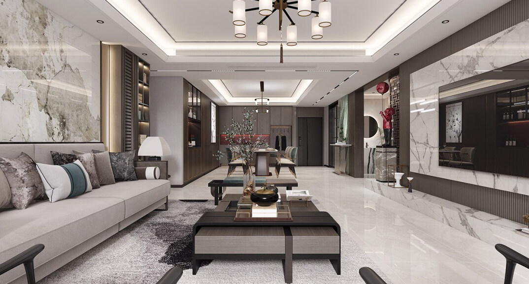 綠城·海棠印月166㎡三室二廳客廳新中式風(fēng)格裝修案例效果圖