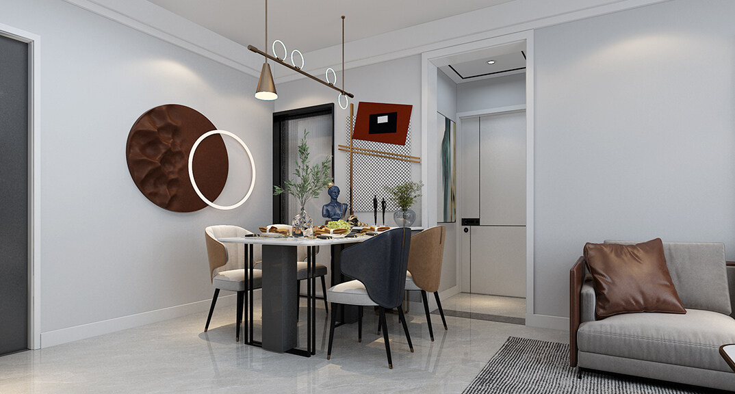 磊鑫伊頓陽光125㎡三室二廳餐廳輕奢風(fēng)格裝修案例效果圖